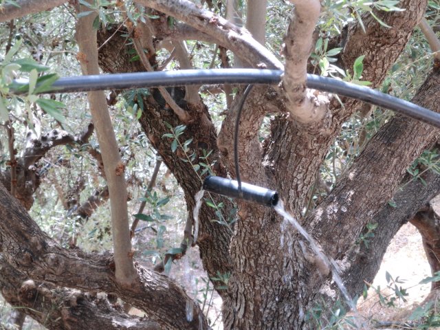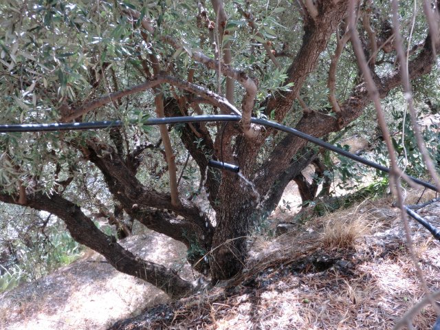 Bewässerung von Olivenbäumen, gesehen am Rückweg aus der Sarakinas-Schlucht bei Myrtos